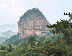 麦积山,又名麦积崖,始创于十六国后秦(公元三八四年至四一七年)时期。区内松竹丛生,山峦迭翠,周围群峰环抱,麦积一秀崛起,古称“秦地林朱之冠”,是我国秦岭山脉西端小陇山中的一座奇峰,海拔1742米,距天水火车站三十公里。山高只142米,但山的形状奇特,孤峰崛起,犹如麦垛,人们便称之为麦积山。山峰的西南面为悬崖峭壁,著名的麦积山石窟就开凿在这峭壁上,有的距山基二三十米,有的达七八十米。在如此陡峻的悬崖上开凿成百上千的洞窟和佛像,在我国的石窟中是罕见的。 据史书记载,著名禅僧玄高、昙弘在此讲学,“聚集僧人三百”。北魏、西魏、北周三朝,大兴崖阁,造像万千。隋、唐、五代、宋、元、明、清都曾不断开凿或重修。历史上虽遭多次地震、火灾的破坏,仍保存窟龛194个,泥塑、石刻7800多件,壁画1000多平方米,北朝崖阁8座。 麦积山周围风景秀丽,山峦上密布着翠柏苍松、野花茂草。攀上山顶,极目远望,四面全是郁郁葱葱的青山,只见千山万壑,重峦叠嶂,青松似海,云雾阵阵,远景近物交织在一起,构成了一幅美丽的图景,这图景被称为天水八景之首的“麦积烟雨”。 |